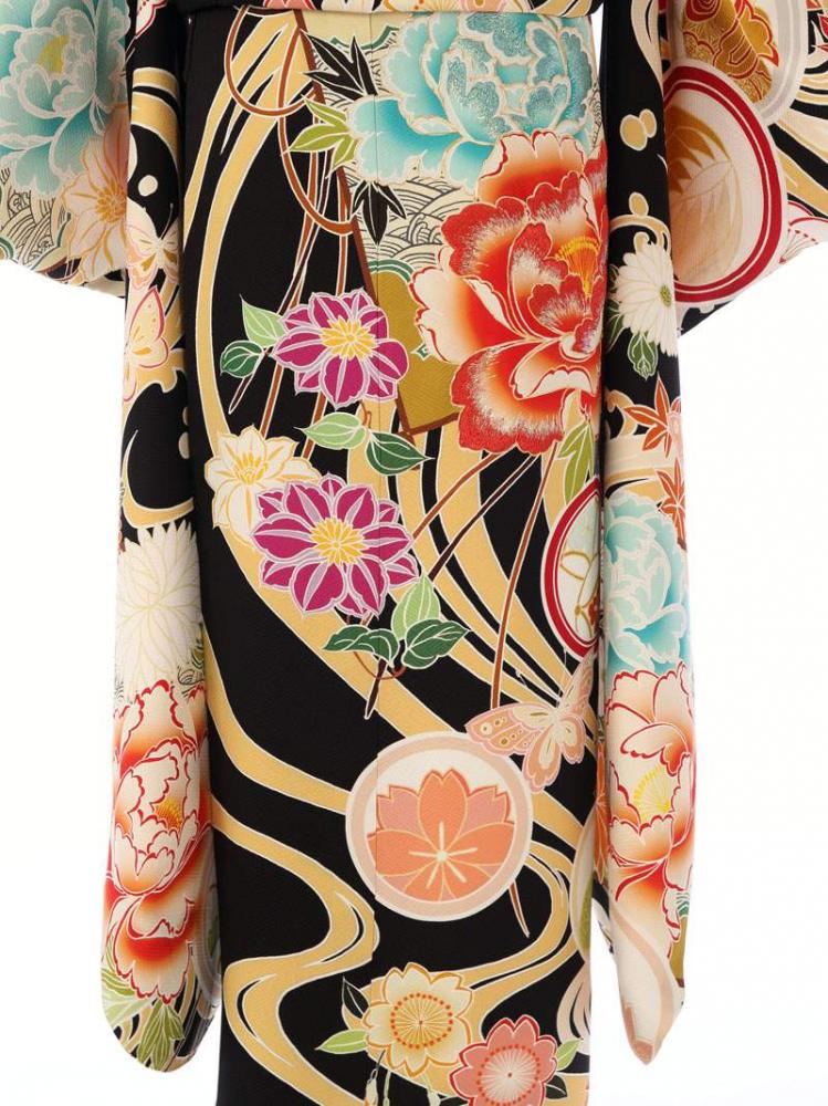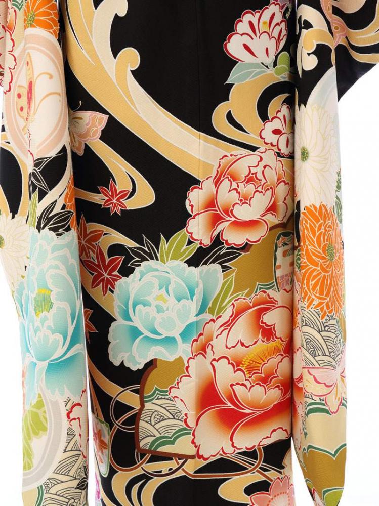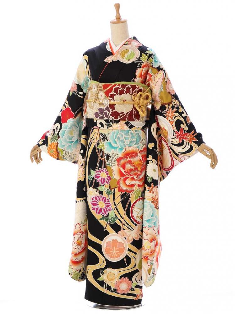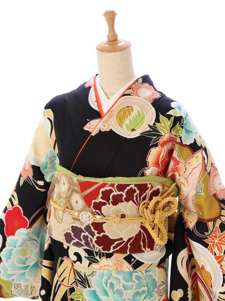 振袖|黒系| 牡丹 |8S256|対応身長:158-168cm|サイズ:21号-29号