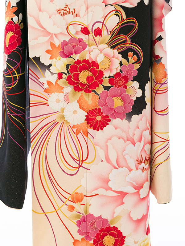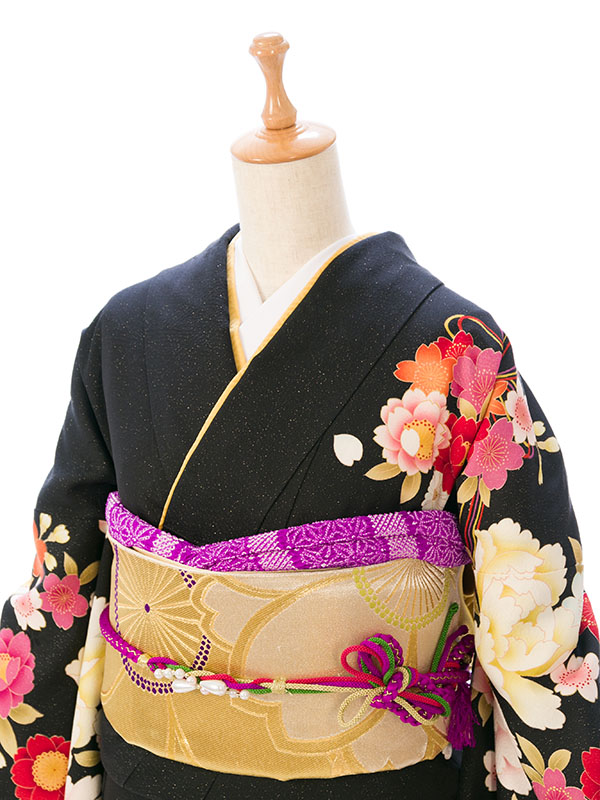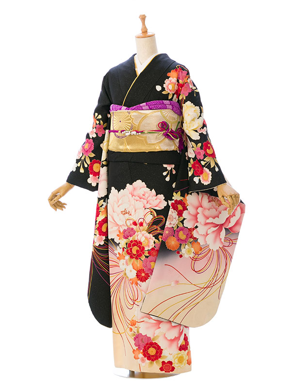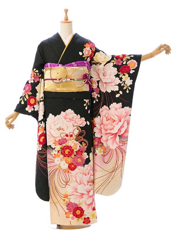 振袖|黒系| 牡丹 |6S134|対応身長:153-163cm|サイズ:7号-13号