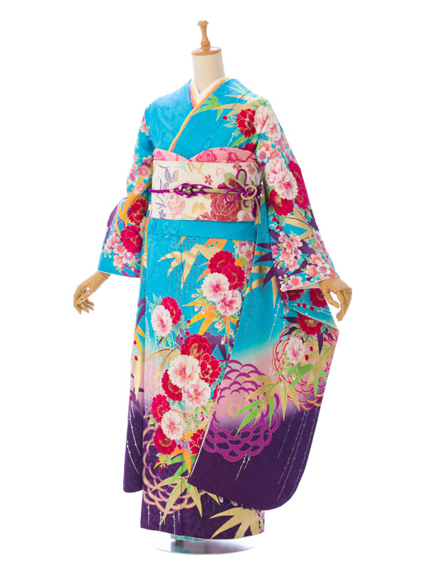 振袖|青系|桜 |7S358|対応身長:153-165cm|サイズ:7号-13号