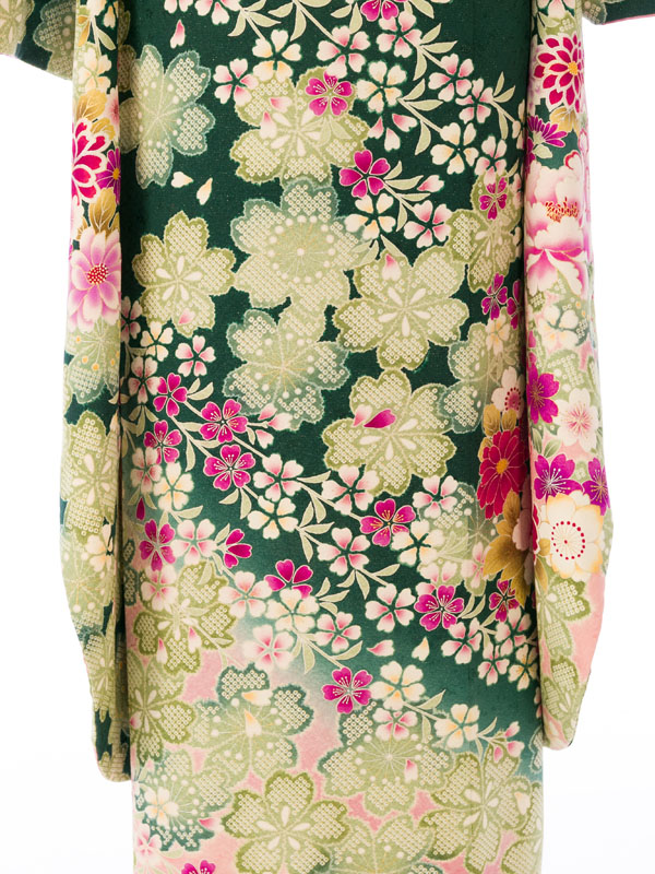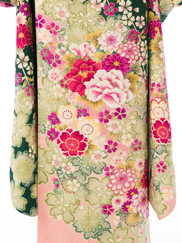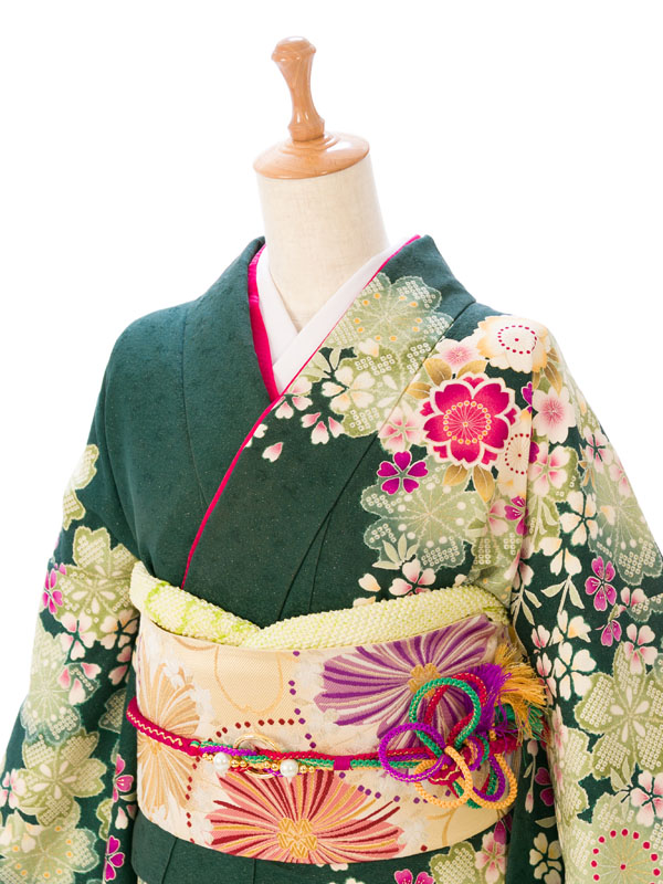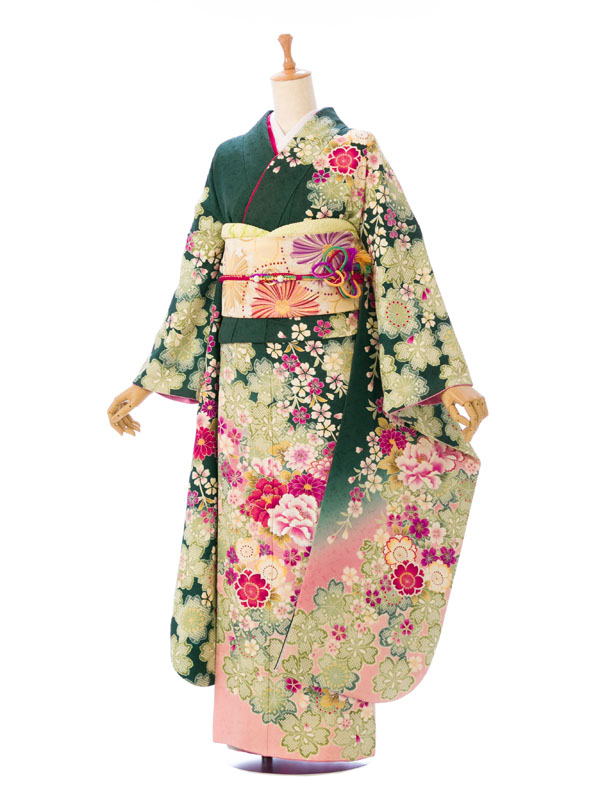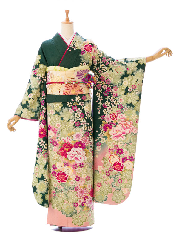 振袖|緑系|桜 牡丹 |6S131|対応身長:155-163cm|サイズ:7号-13号