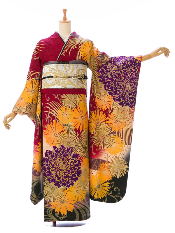 振袖|赤系| 牡丹 |1S2051|対応身長:153-165cm|サイズ:7号-13号