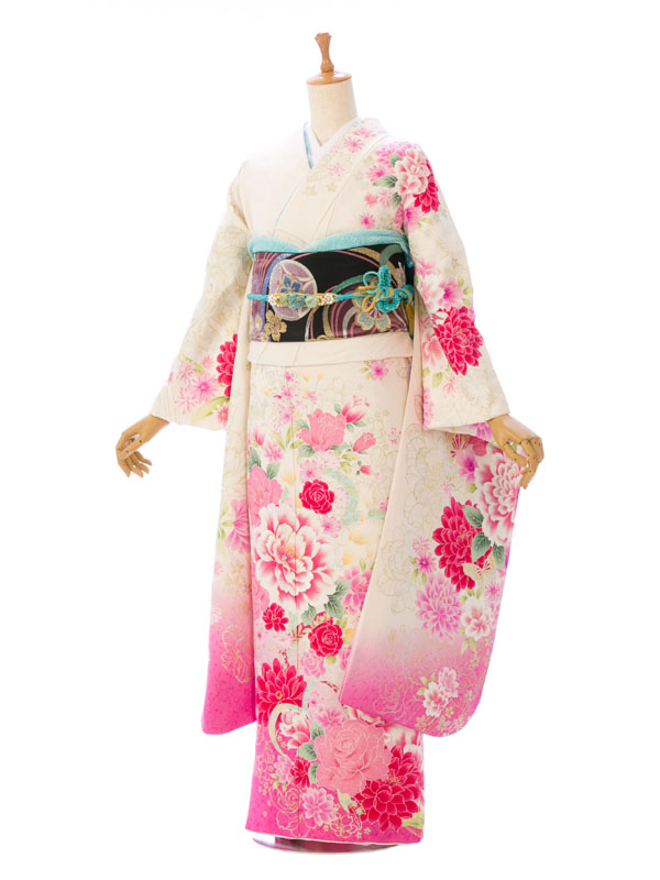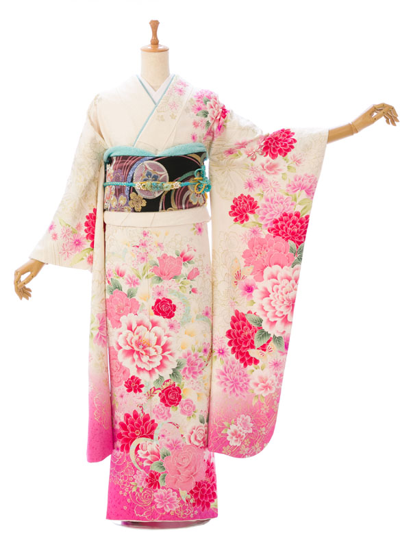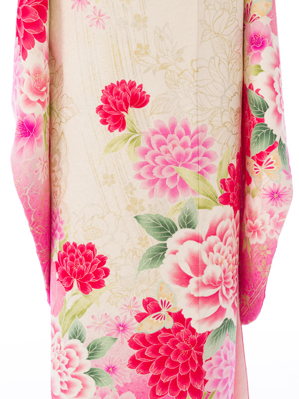 振袖|白系| 牡丹 |1S1310|対応身長:153-165cm|サイズ:7号-13号