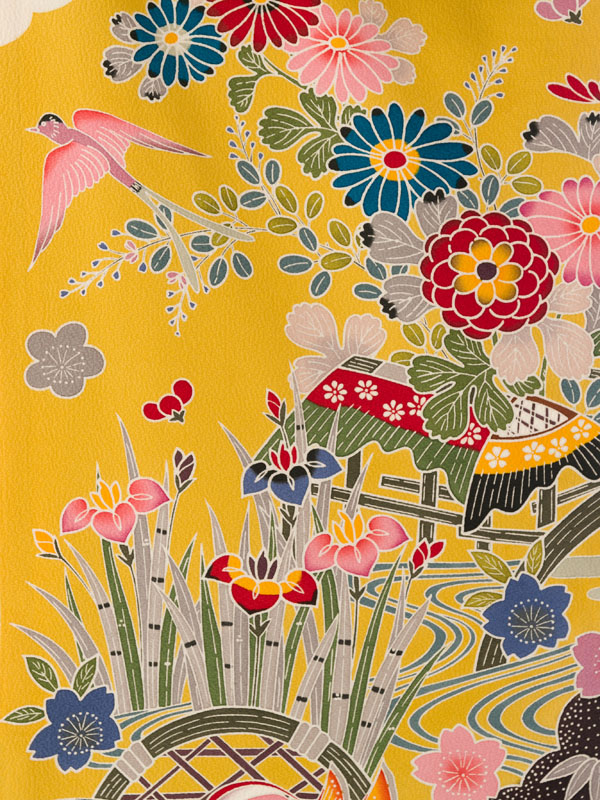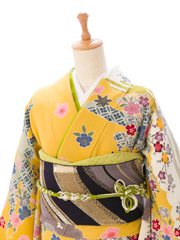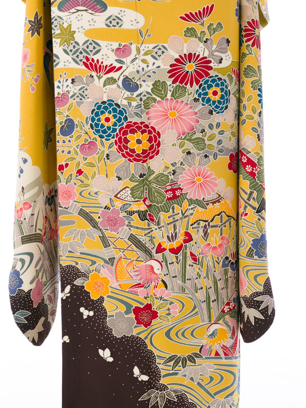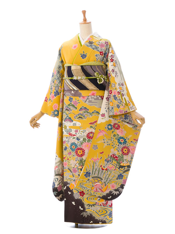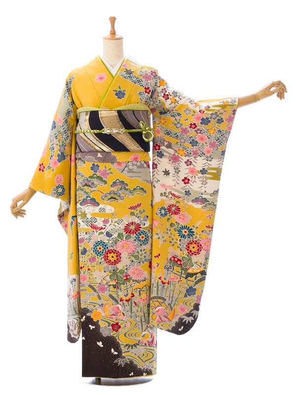 振袖|黄色系|紅型|5S255|対応身長:150-160cm|サイズ:7号-13号