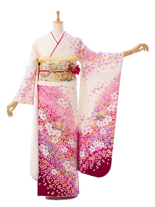 振袖|白系|桜 |5S398|対応身長:155-168cm|サイズ:7号-13号