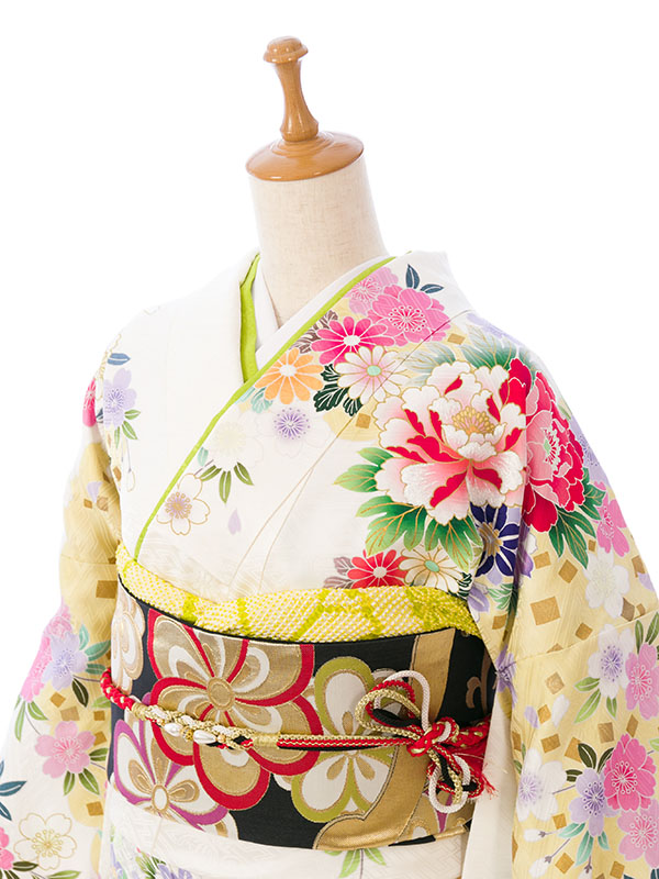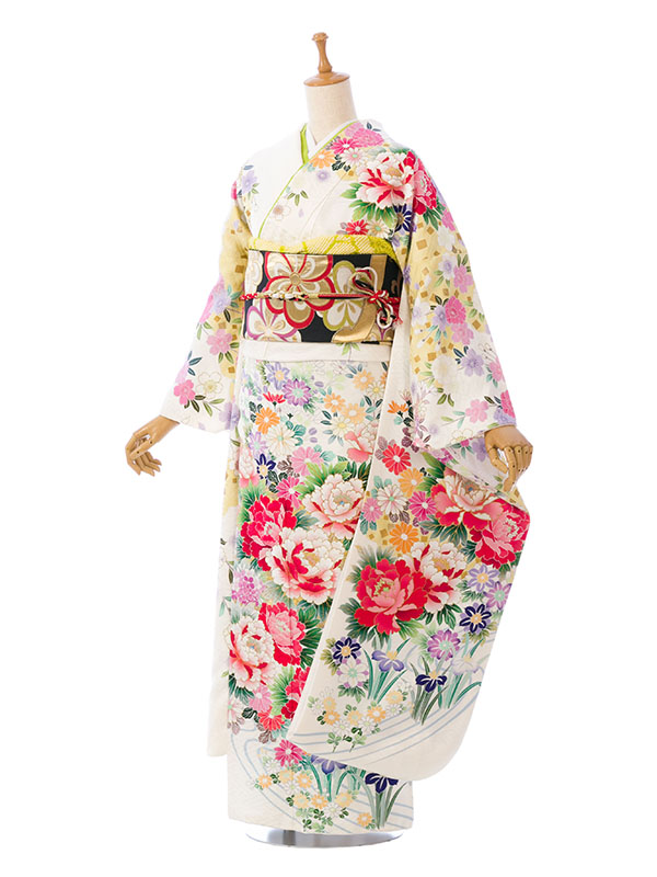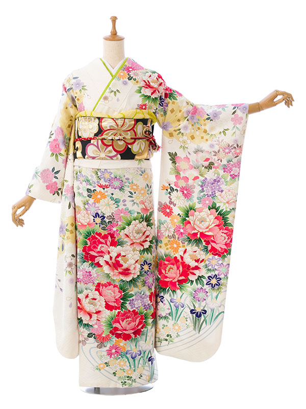 振袖|白系| 牡丹 |1S2673|対応身長:155-168cm|サイズ:7号-13号