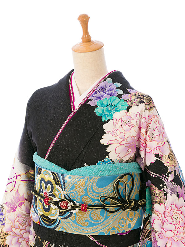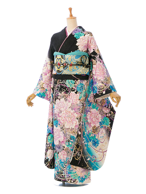 振袖|黒系|桜 牡丹 |1S1632|対応身長:155-168cm|サイズ:7号-13号