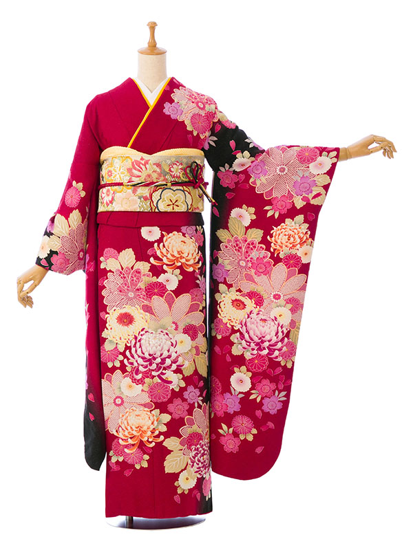 振袖|赤系|桜 |6S341|対応身長:153-165cm|サイズ:7号-13号