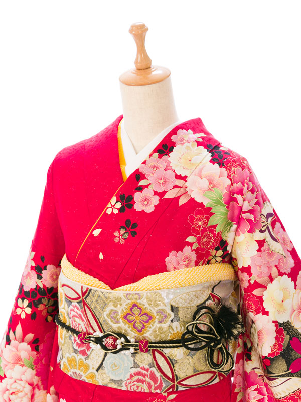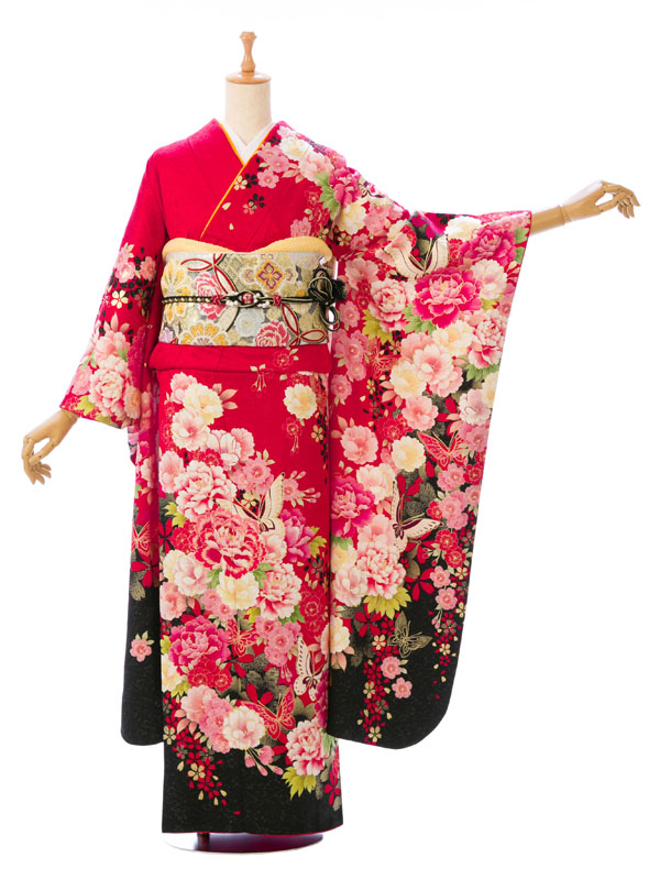 振袖|赤系|桜 牡丹 |1S1433|対応身長:148-160cm|サイズ:7号-13号