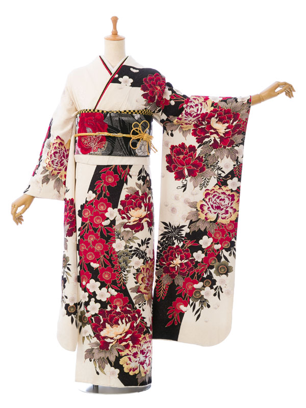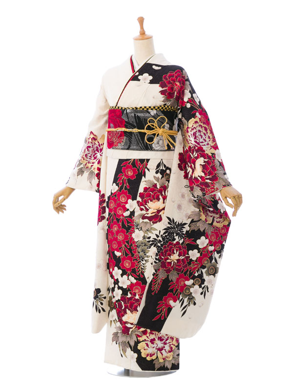振袖|白系|桜 牡丹 |7S115|対応身長:153-165cm|サイズ:7号-13号