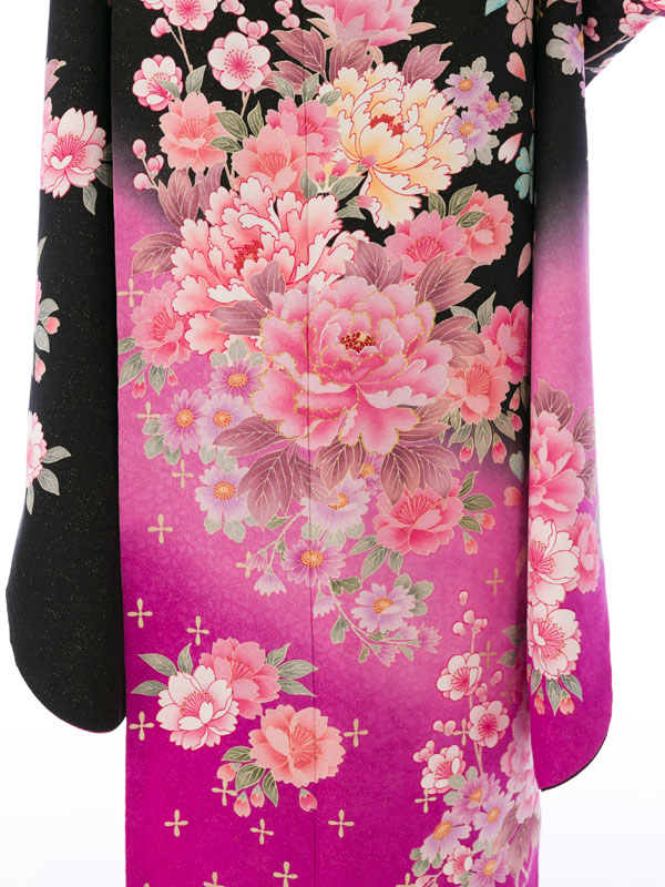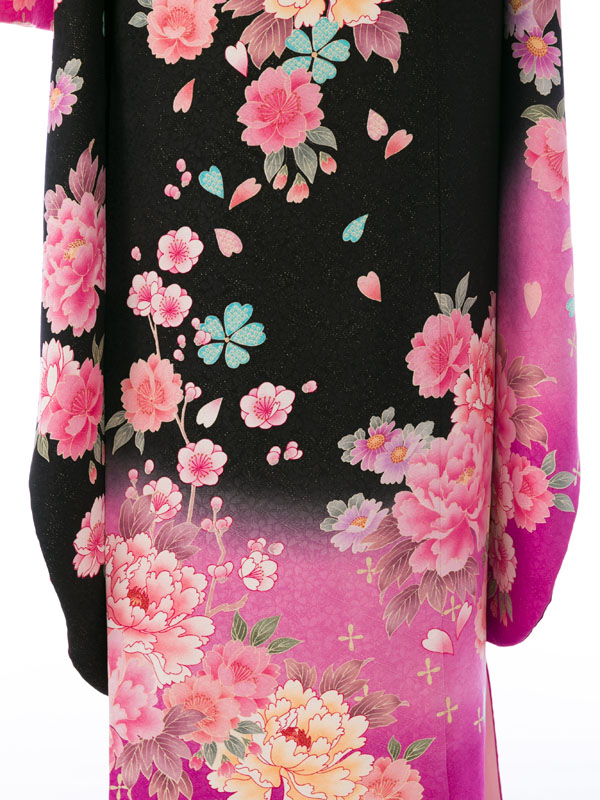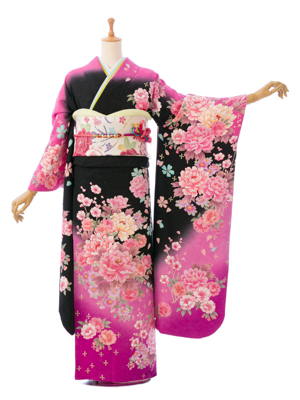 振袖|黒系|桜 牡丹 |6S035|対応身長:153-165cm|サイズ:7号-13号