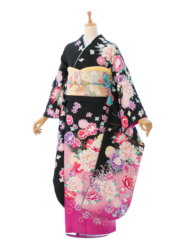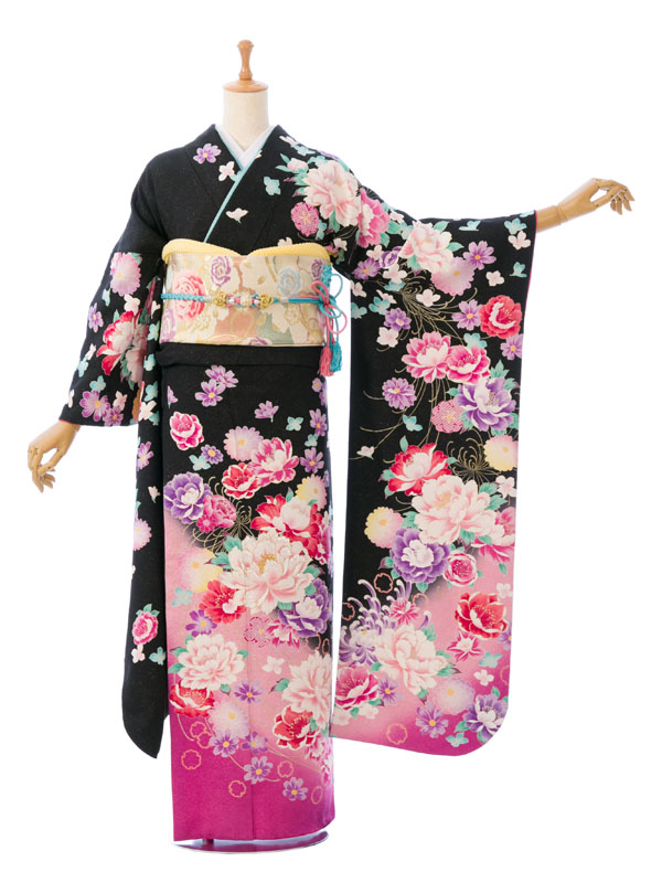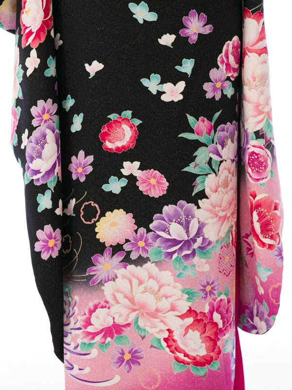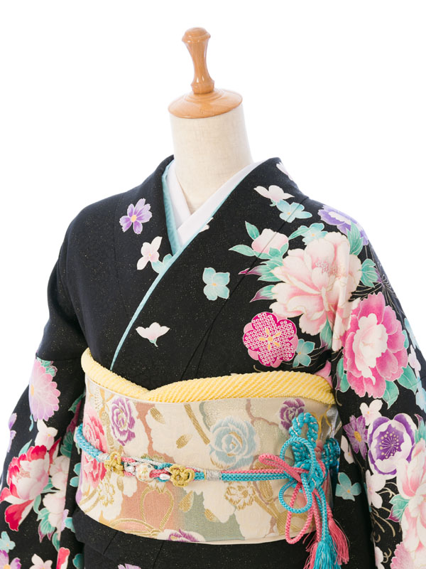 振袖|黒系| 牡丹 |6S309|対応身長:153-165cm|サイズ:7号-13号