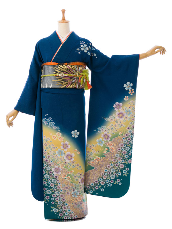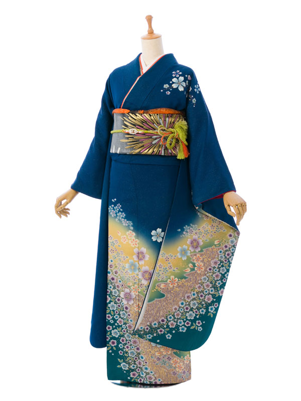 振袖|青系|桜|対応身長:153-165cm|サイズ:7号-13号|4S785