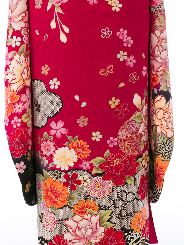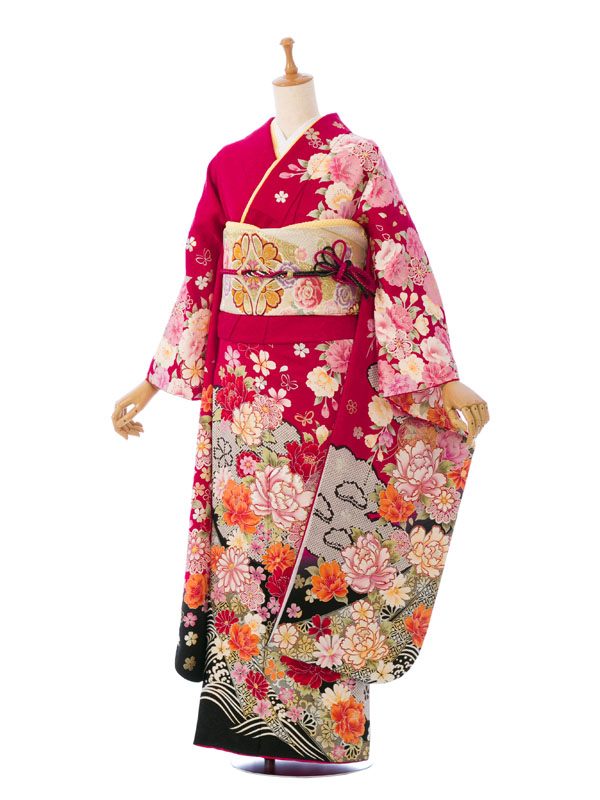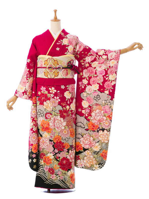 振袖|赤系| 牡丹 |1S1436|対応身長:145-158cm|サイズ:13号-17号
