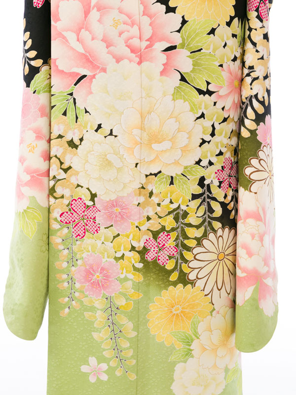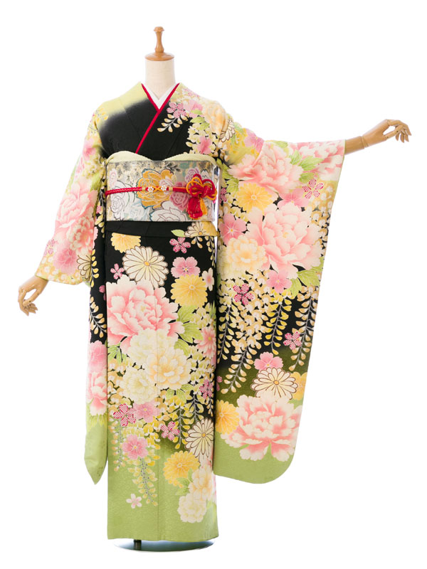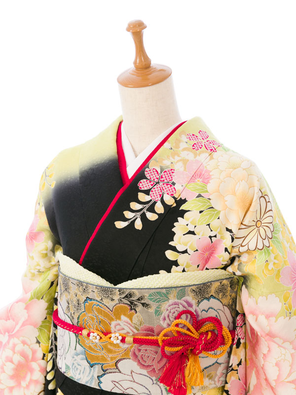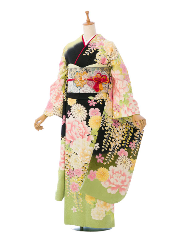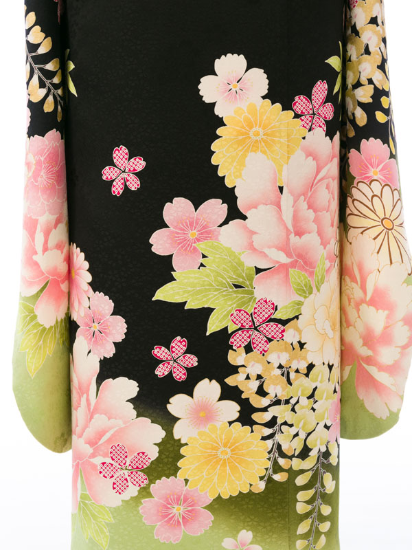 振袖|黒系|桜 牡丹 |6S655|対応身長:158-168cm|サイズ:7号-13号