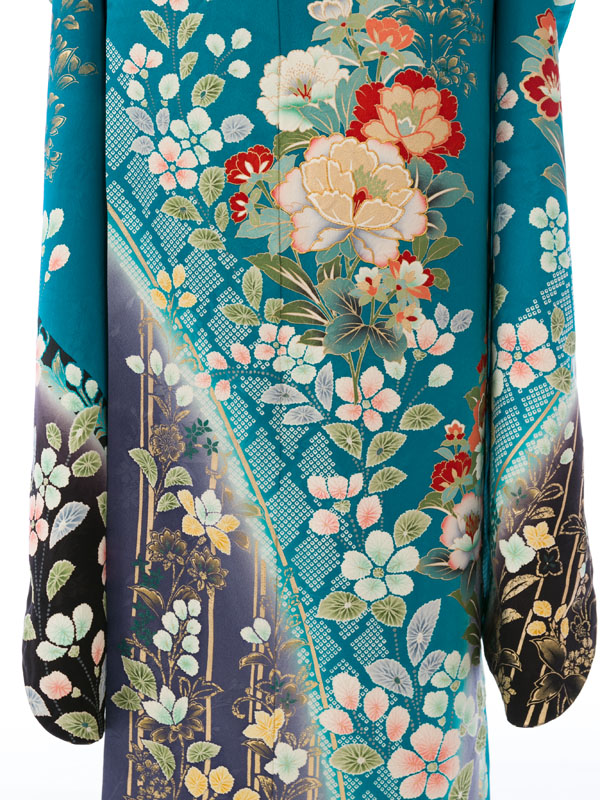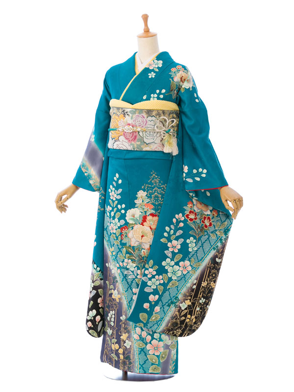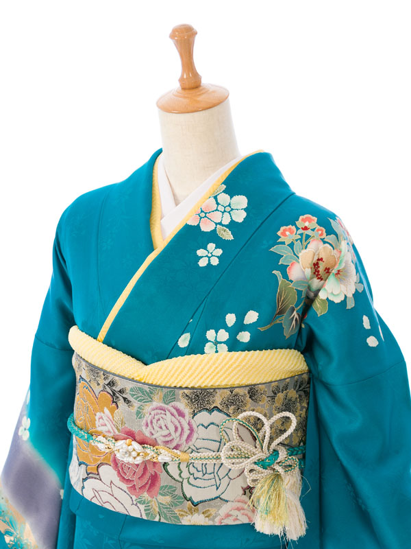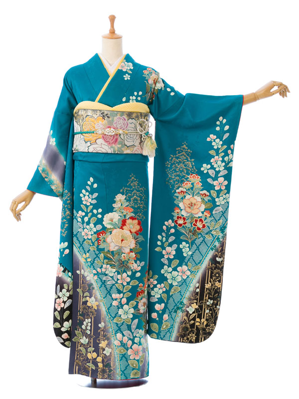 振袖|緑系| 牡丹 |3S266|対応身長:153-165cm|サイズ:7号-13号