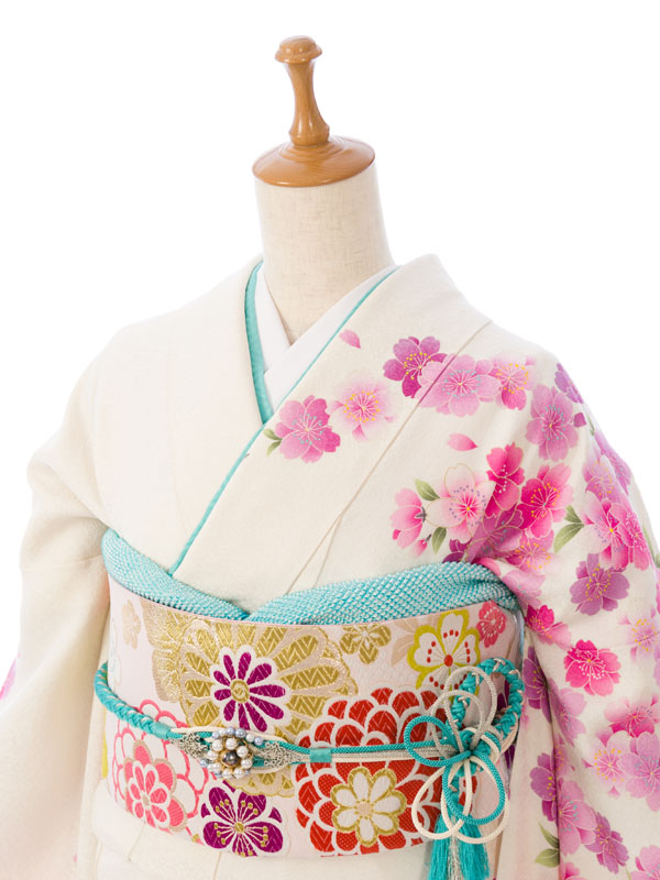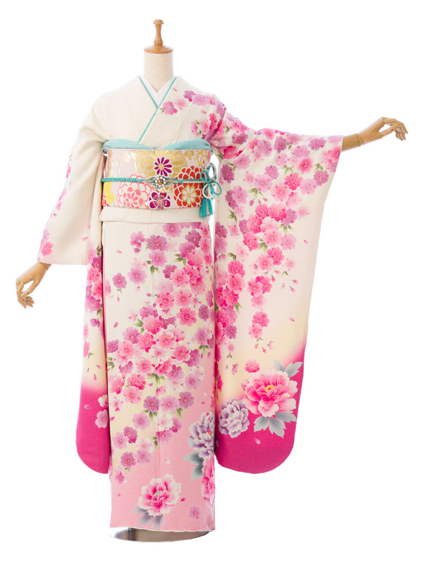 振袖|白系|桜 牡丹 |6S031|対応身長:153-165cm|サイズ:7号-13号
