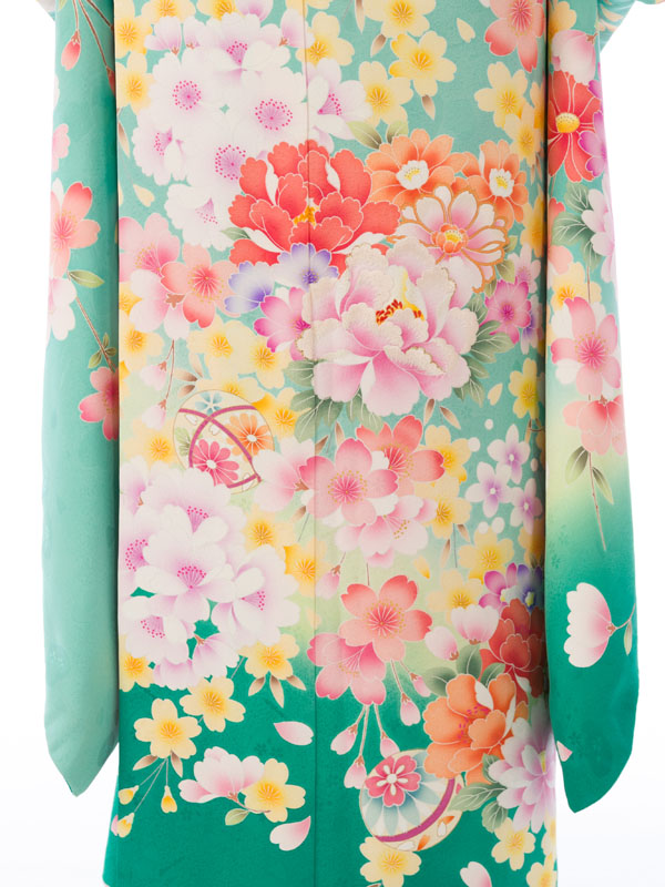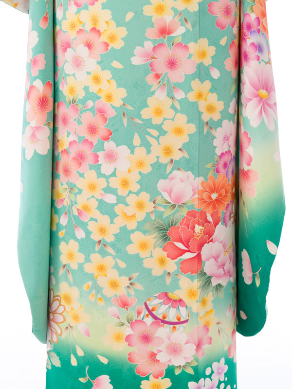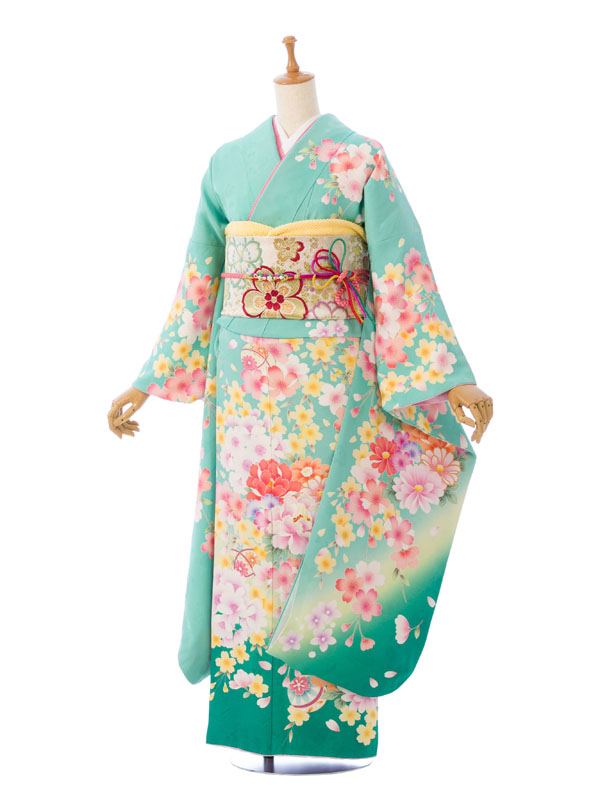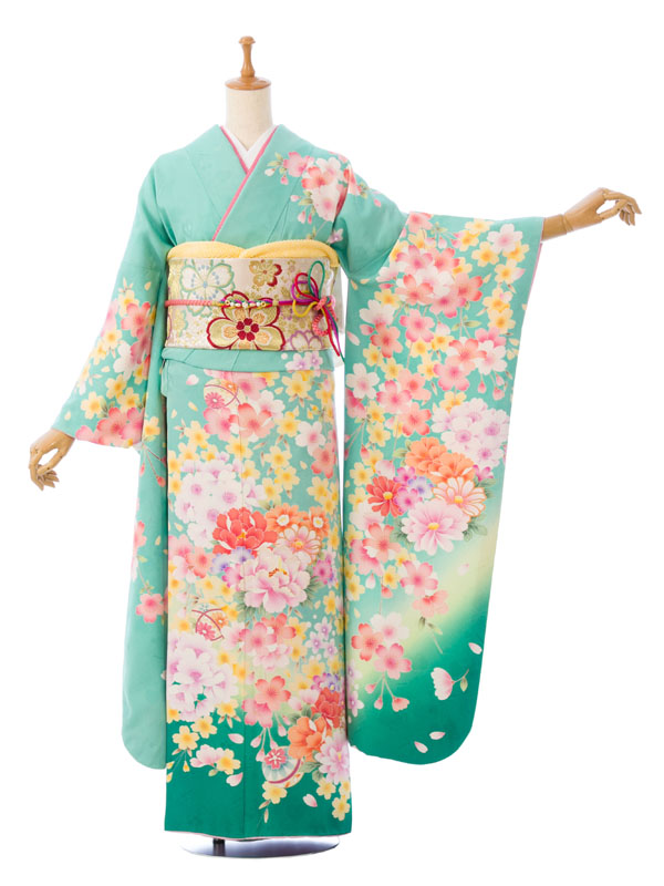 振袖|緑系|桜 |6S124|対応身長:153-165cm|サイズ:7号-13号