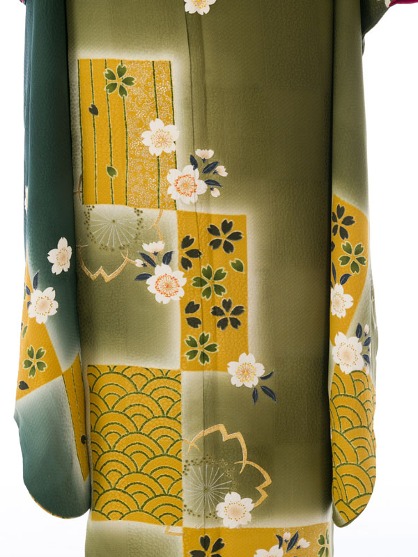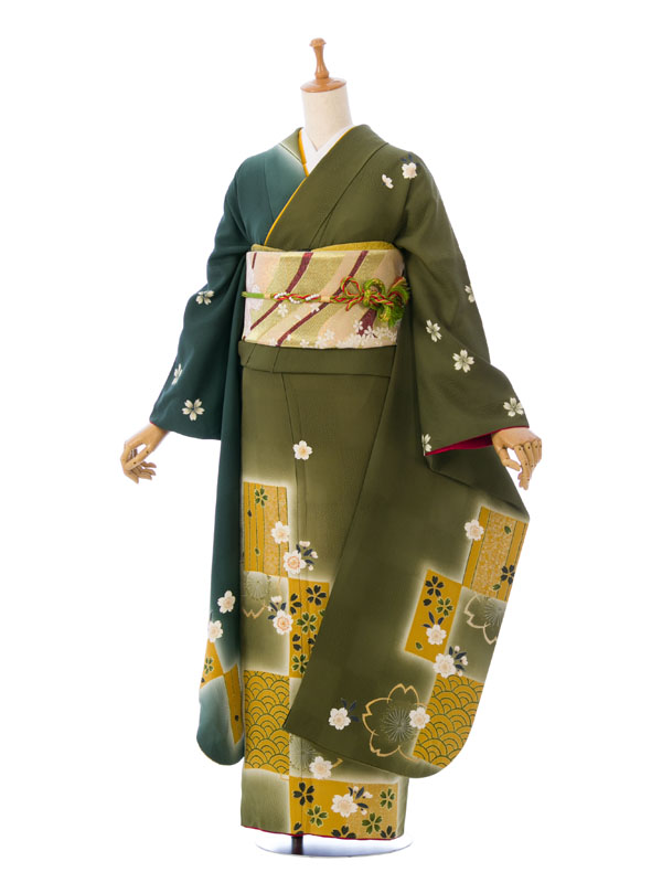 振袖|緑系|桜 |4S555|対応身長:163-170cm|サイズ:7号-13号