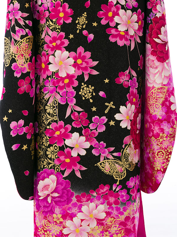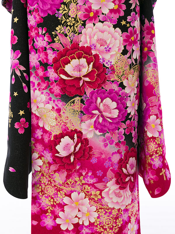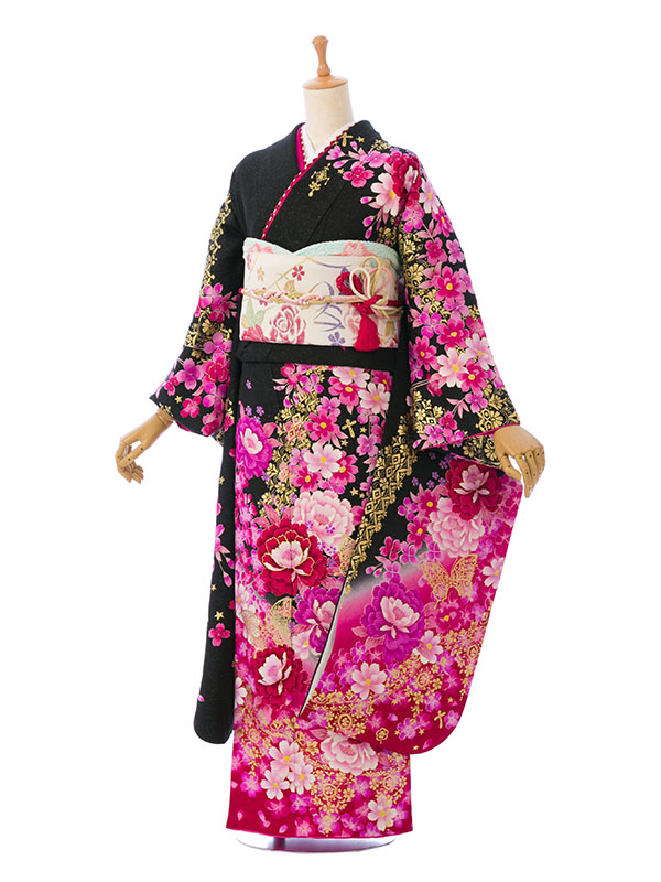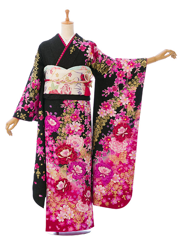 振袖|黒系|桜 牡丹 |7S515|対応身長:153-165cm|サイズ:7号-13号