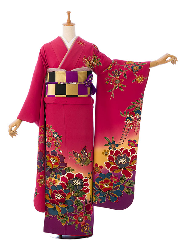 振袖|ピンク系| 牡丹 |3S812|対応身長:148-160cm|サイズ:7号-11号
