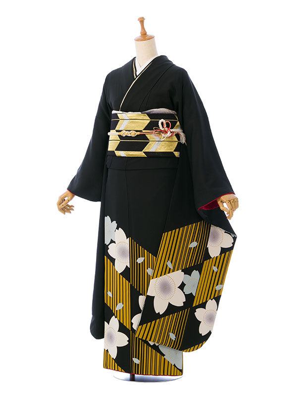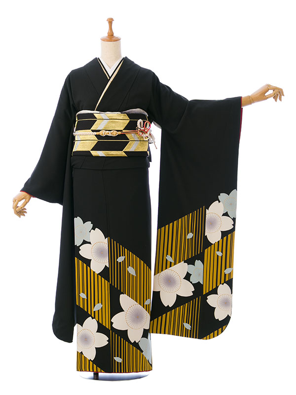 振袖|黒系|桜 |4S659|対応身長:158-170cm|サイズ:7号-13号