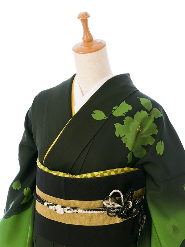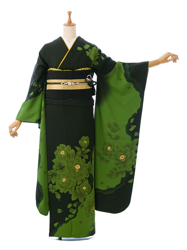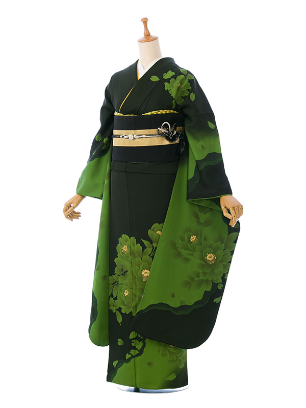 振袖|緑系| 牡丹 |4S632|対応身長:158-170cm|サイズ:7号-13号