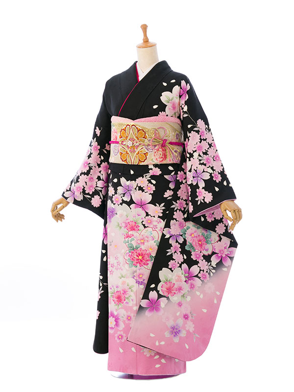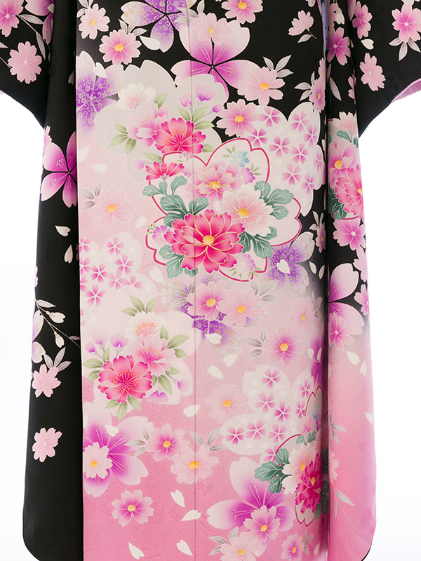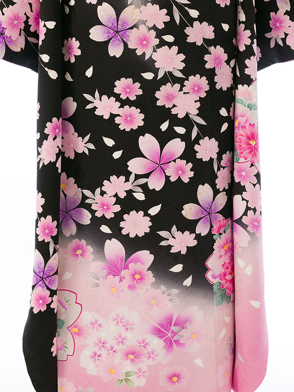 振袖|黒系|桜 牡丹 |5S732|対応身長:153-165cm|サイズ:7号-13号