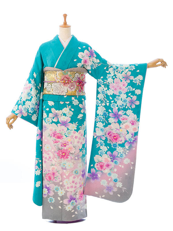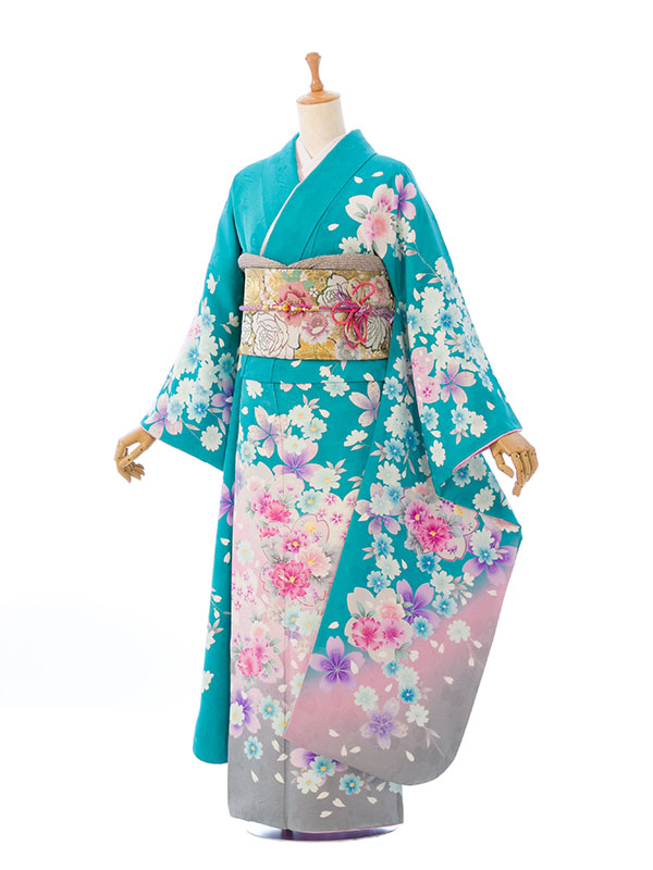 振袖|青系|桜 |5S714|対応身長:153-165cm|サイズ:7号-13号