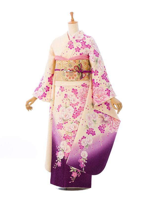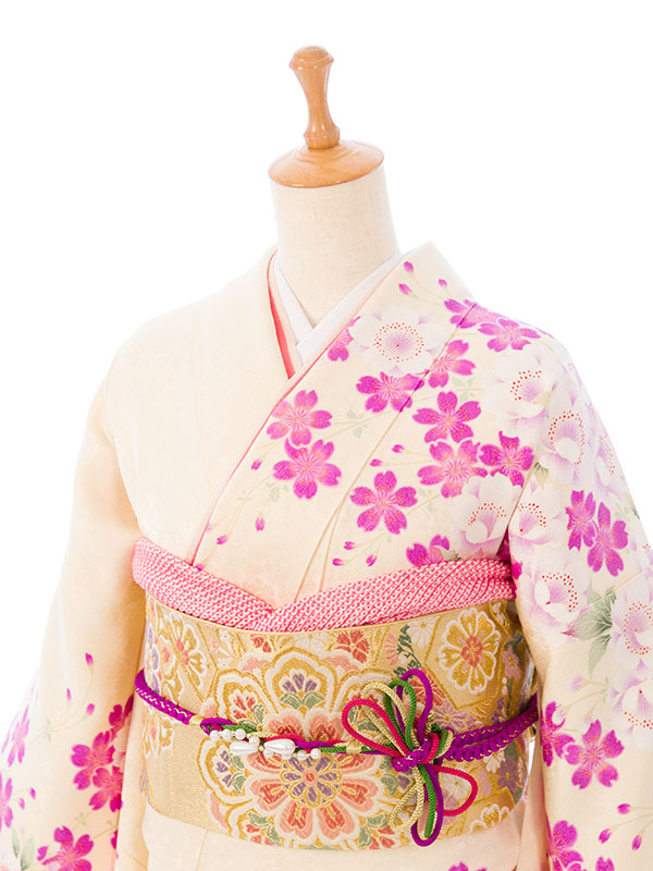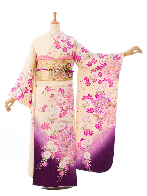 振袖|白系|桜 牡丹 |5S643|対応身長:155-168cm|サイズ:7号-13号