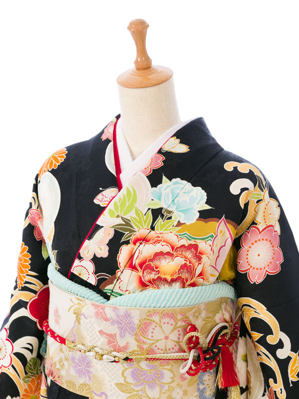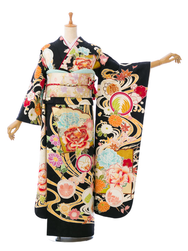 振袖|黒系| 牡丹 古典|1S2343|対応身長:158-170cm|サイズ:7号-13号