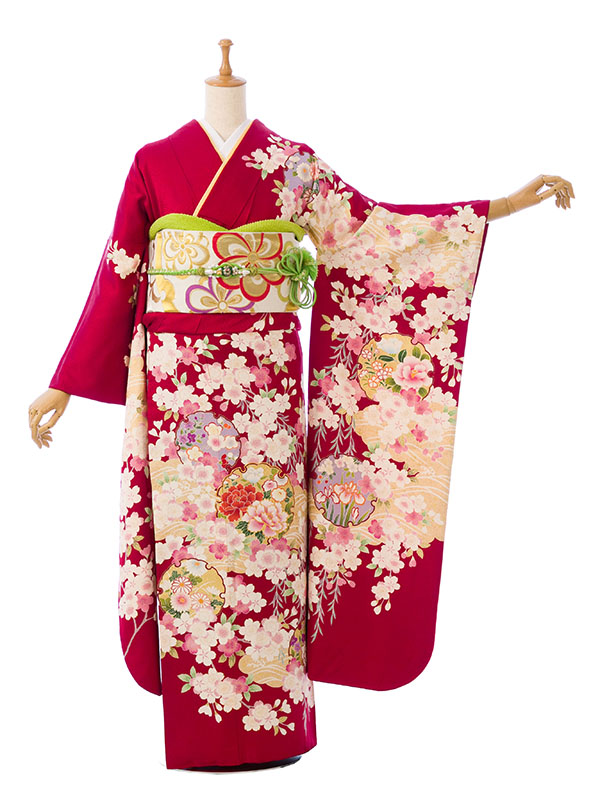 振袖|赤系|桜 |6S044|対応身長:155-168cm|サイズ:7号-13号