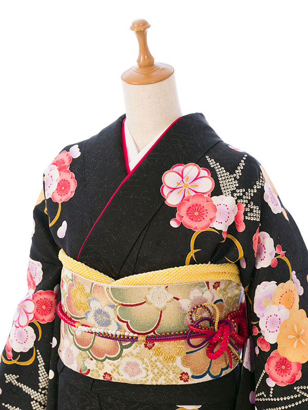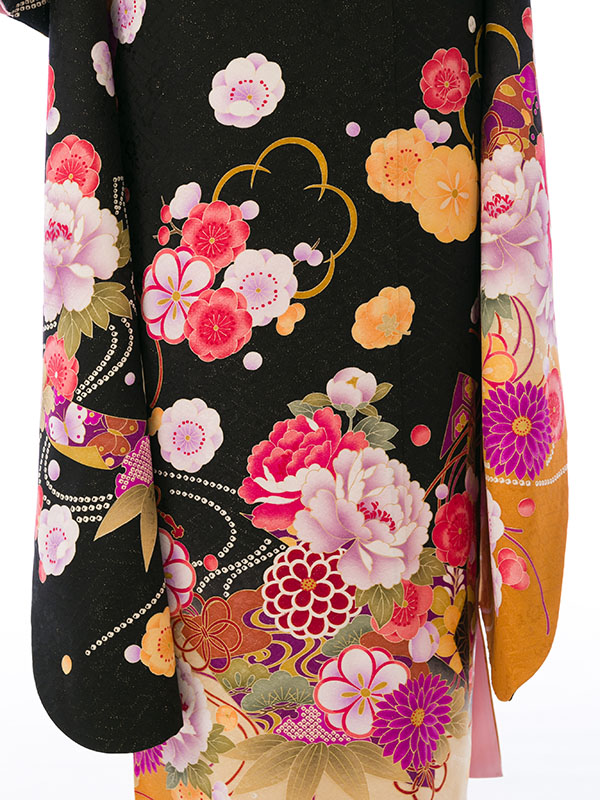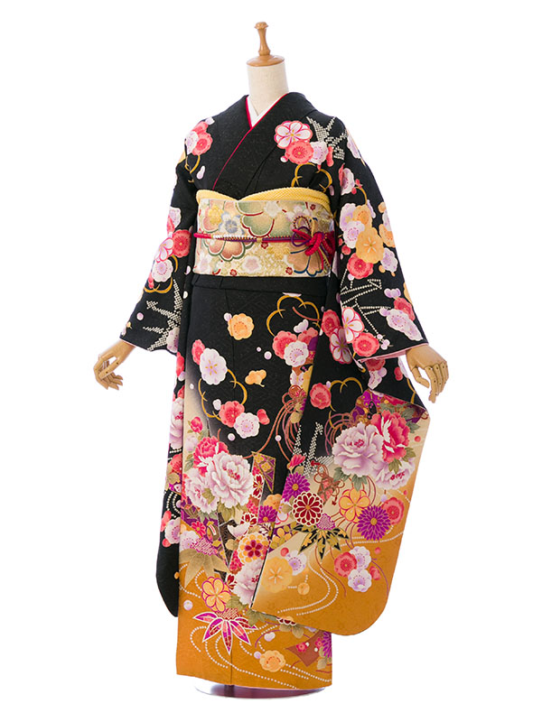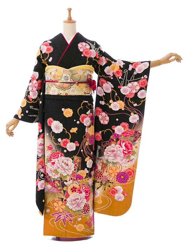 振袖|黒系| 牡丹 |6S346|対応身長:153-165cm|サイズ:7号-13号