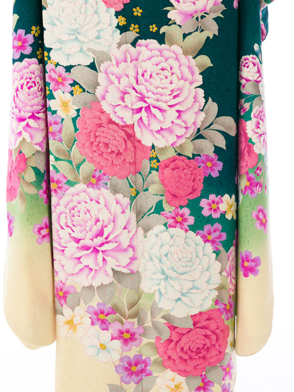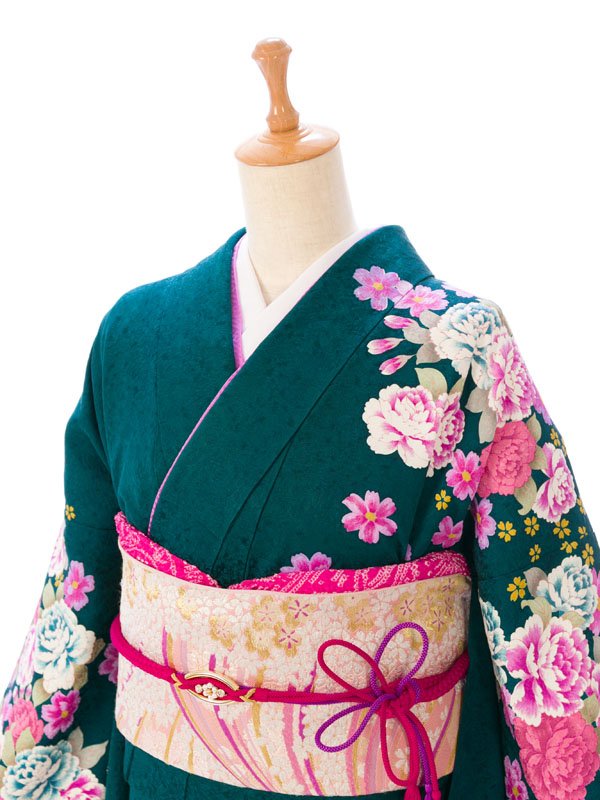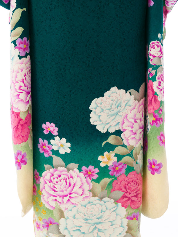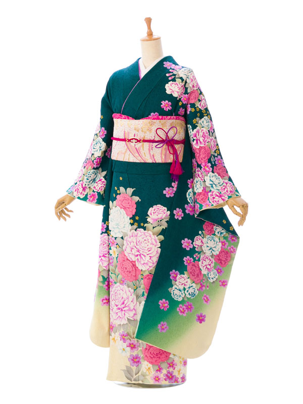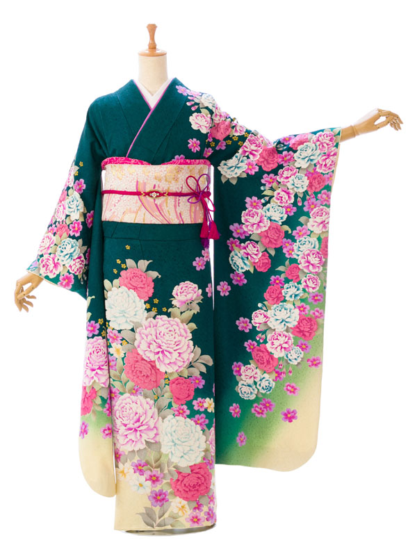振袖|緑系|桜 牡丹 |6S254|対応身長:158-165cm|サイズ:9号-15号