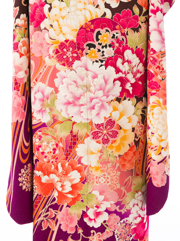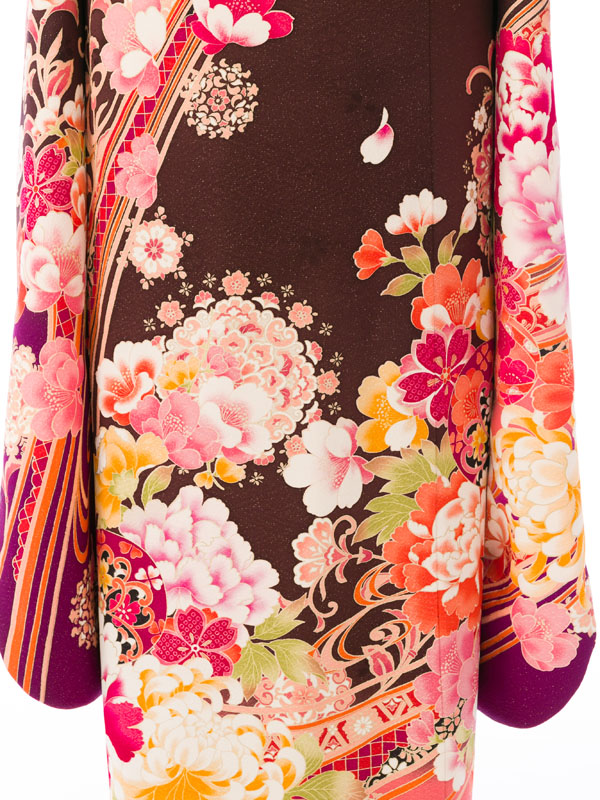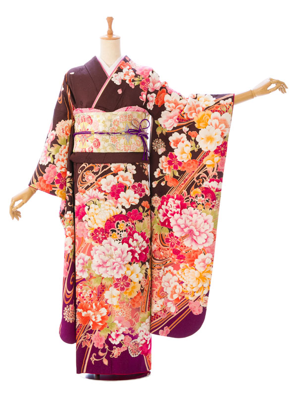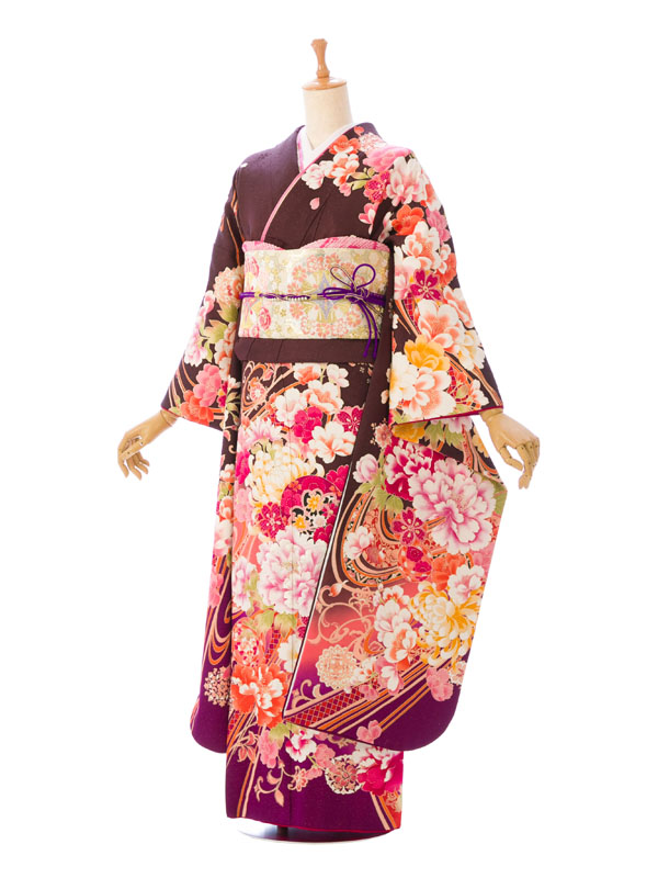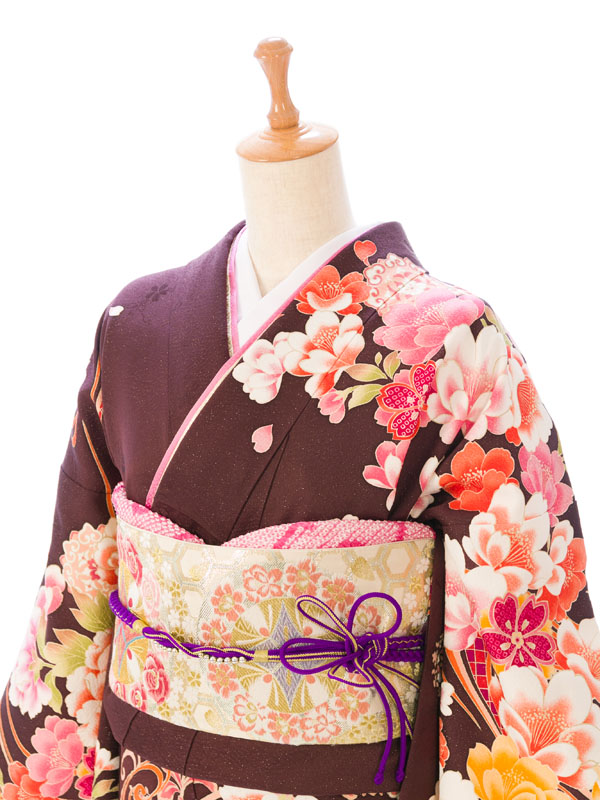 振袖|茶系|桜 牡丹 |7S480|対応身長:148-160cm|サイズ:7号-13号