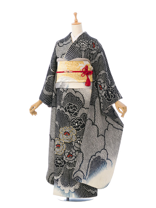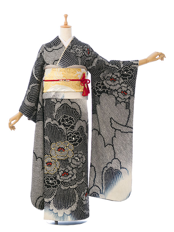 振袖|黒系| 牡丹 |4S549|対応身長:153-165cm|サイズ:7号-13号