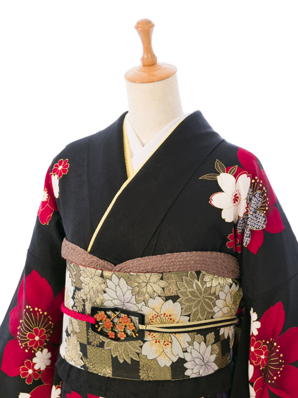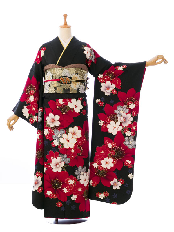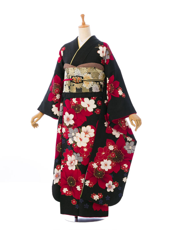振袖|黒系|桜 |6S051|対応身長:153-165cm|サイズ:7号-13号