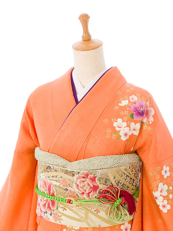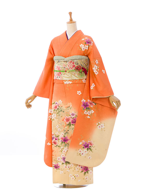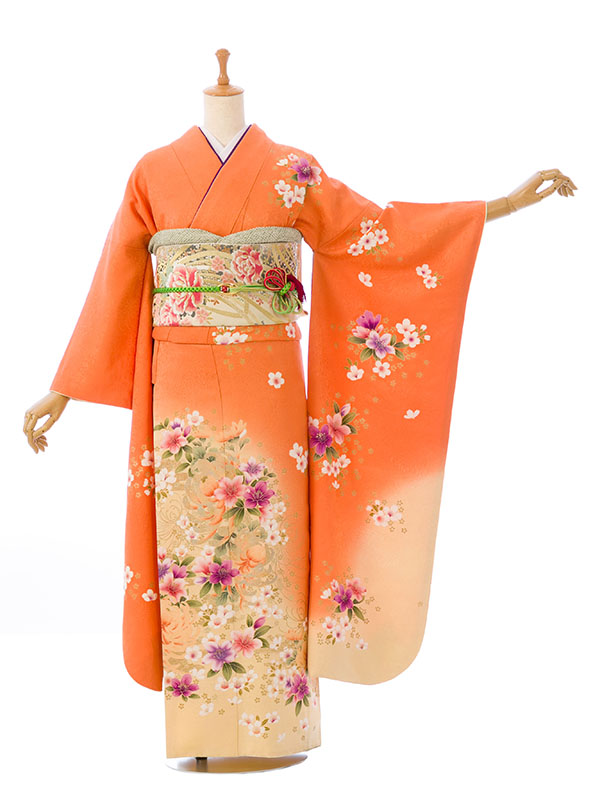 振袖|オレンジ系|桜 |5S658|対応身長:150-160cm|サイズ:7号-13号