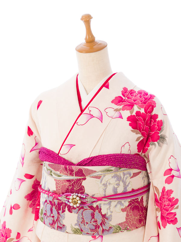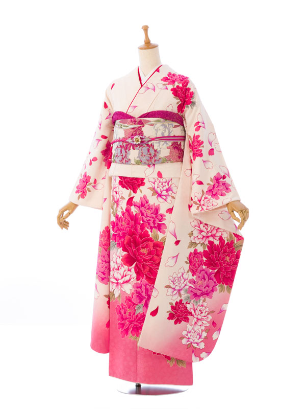 振袖|白系| 牡丹 |6S394|対応身長:155-165cm|サイズ:7号-13号