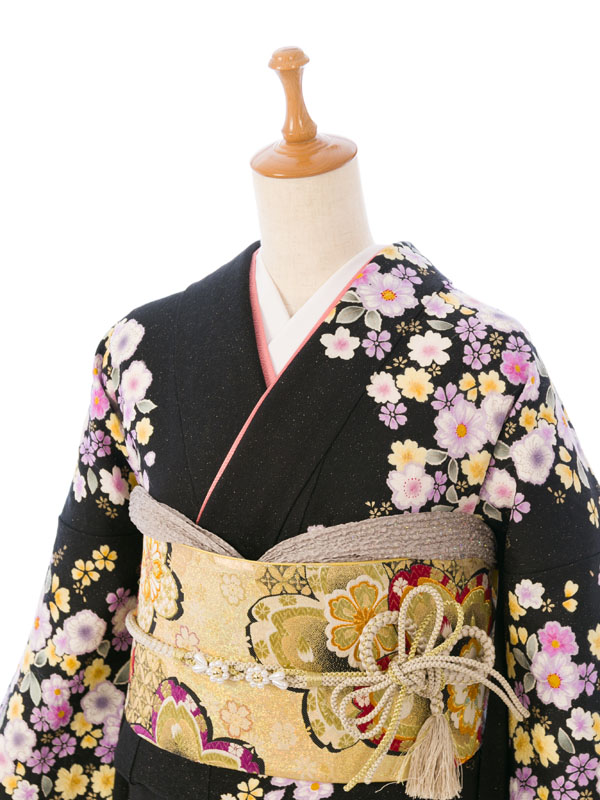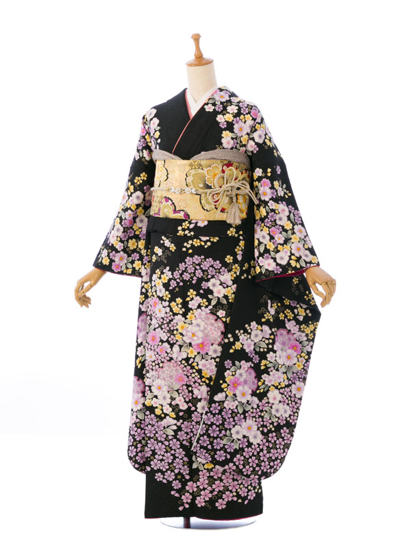 振袖|黒系|桜 |5S319|対応身長:155-165cm|サイズ:7号-13号