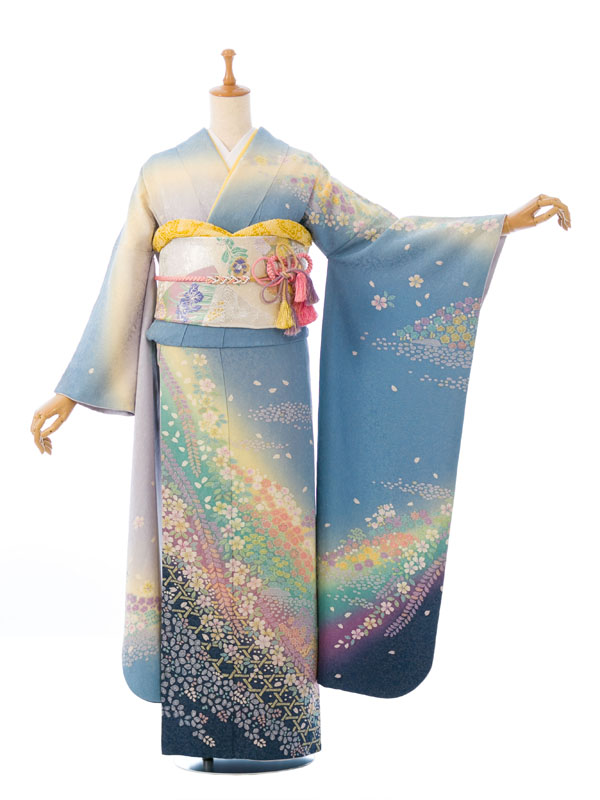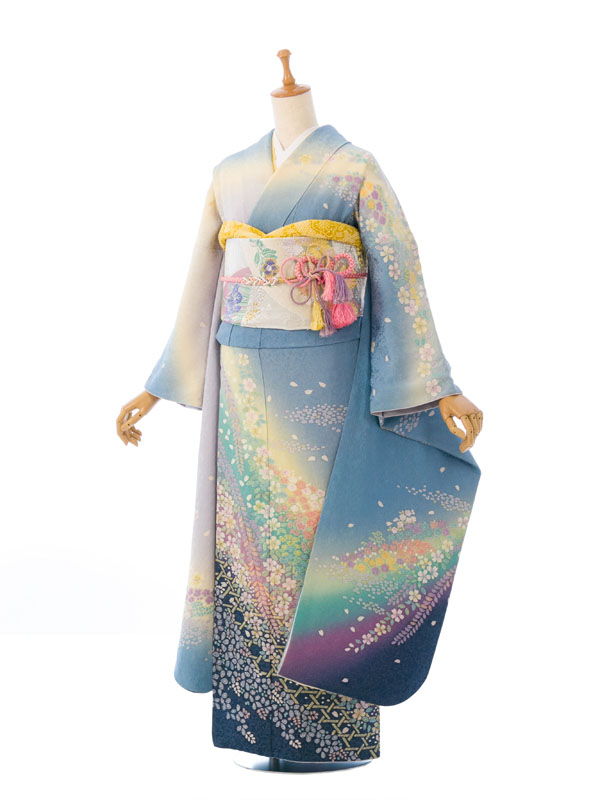 振袖|青系|桜 |4S830|対応身長:153-165cm|サイズ:7号-13号