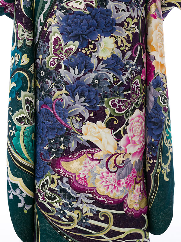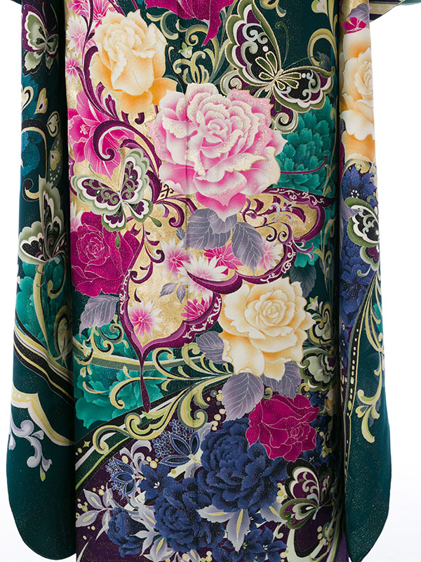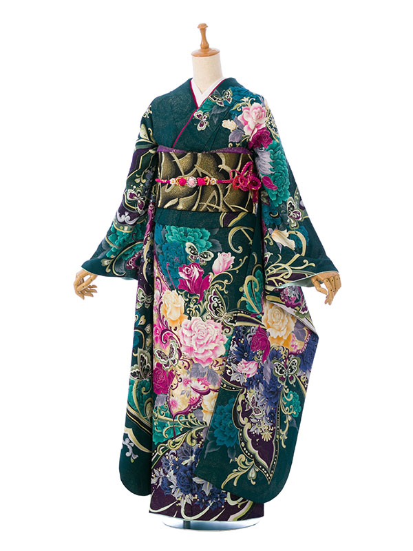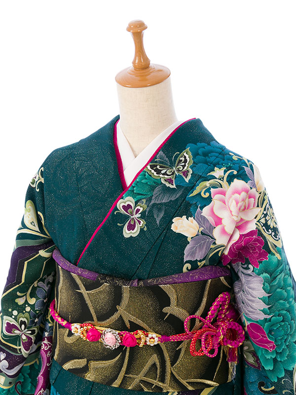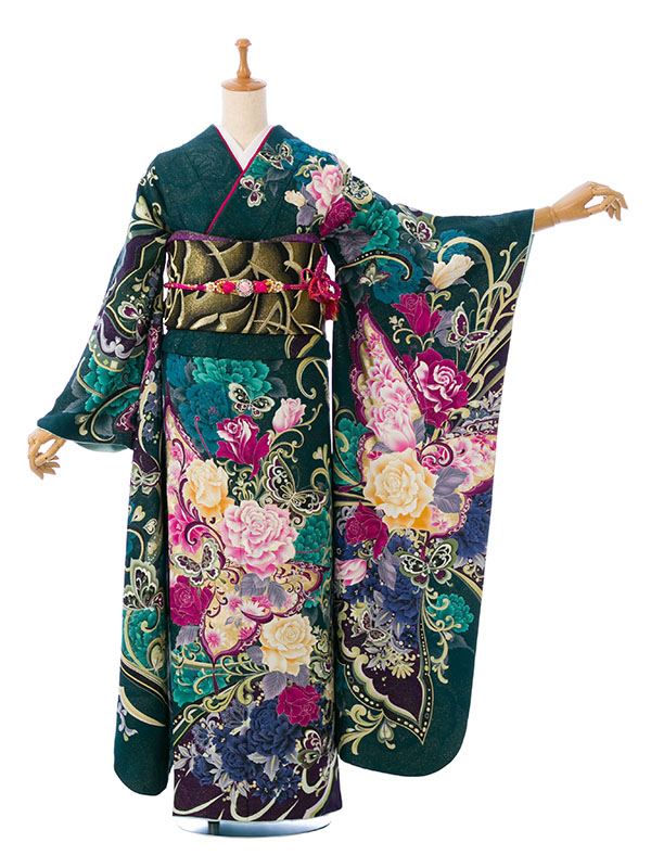 振袖|緑系| 牡丹 |1S1500|対応身長:160-168cm|サイズ:7号-13号