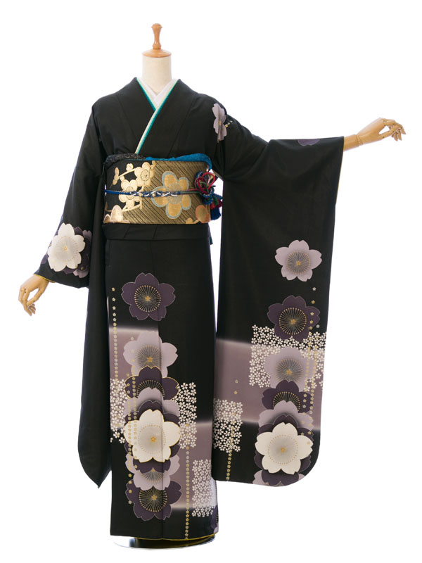 振袖|黒系|桜 |4S520|対応身長:153-165cm|サイズ:7号-13号