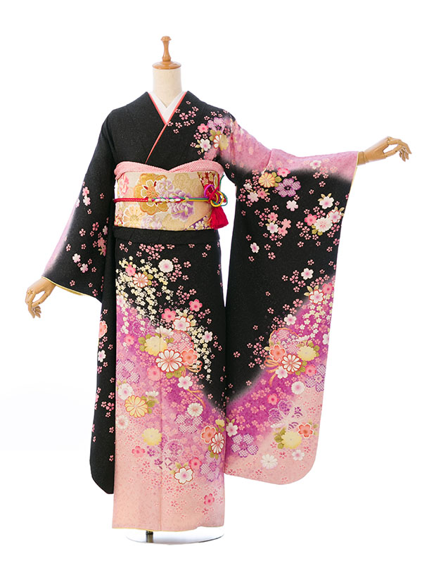 振袖|黒系|桜 |5S360|対応身長:153-165cm|サイズ:7号-13号