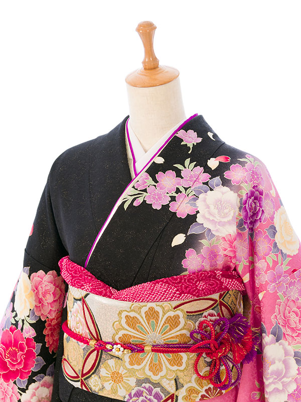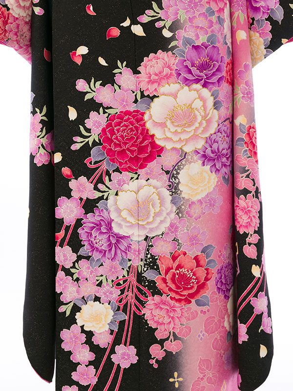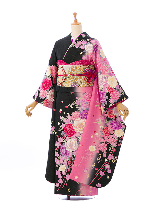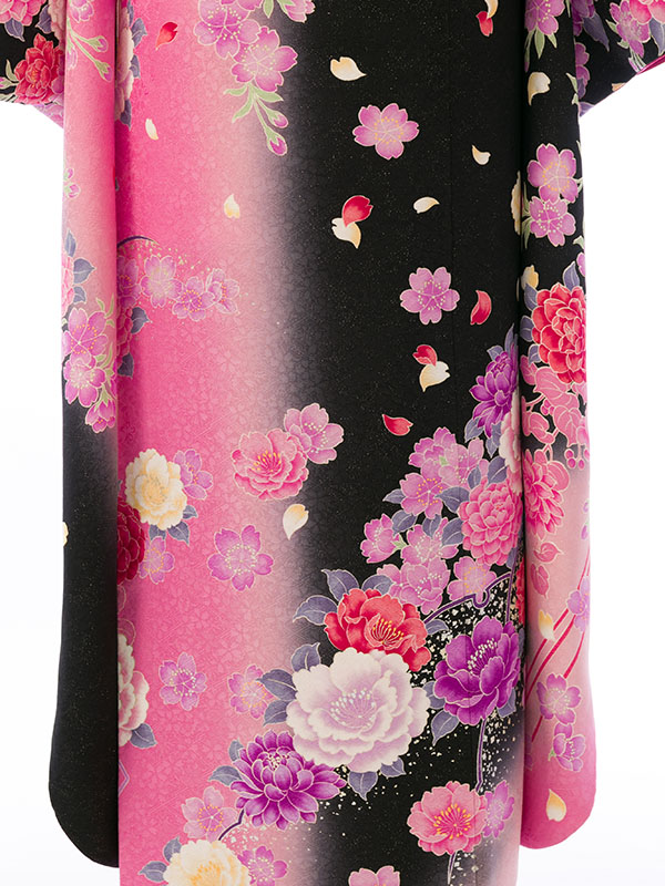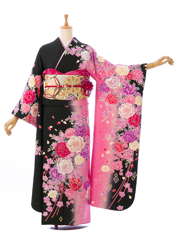 振袖|黒系|桜 牡丹 |6S516|対応身長:153-165cm|サイズ:7号-13号