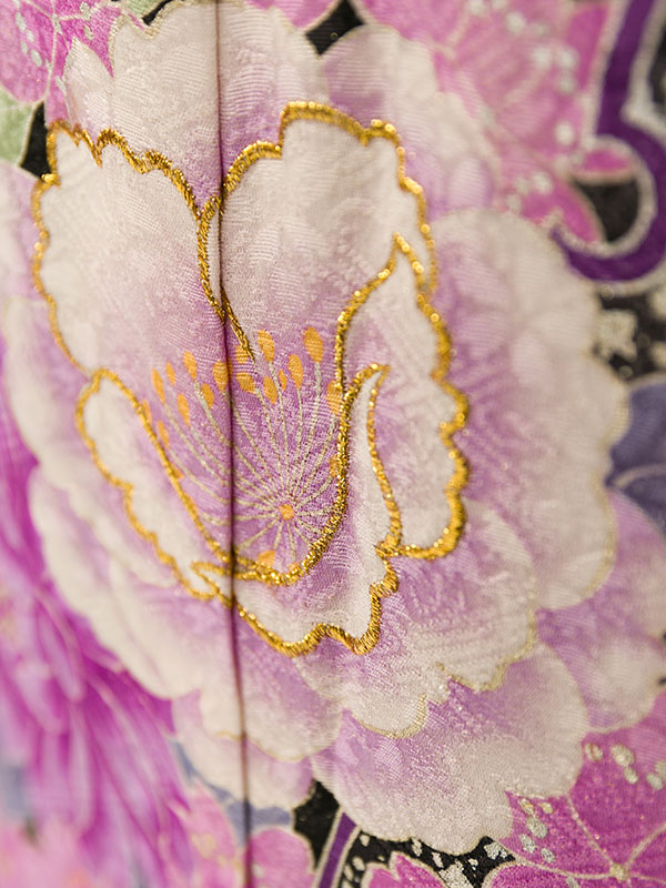 黒ラメ織 ピンク縦ぼかし/牡丹 桜ブーケ