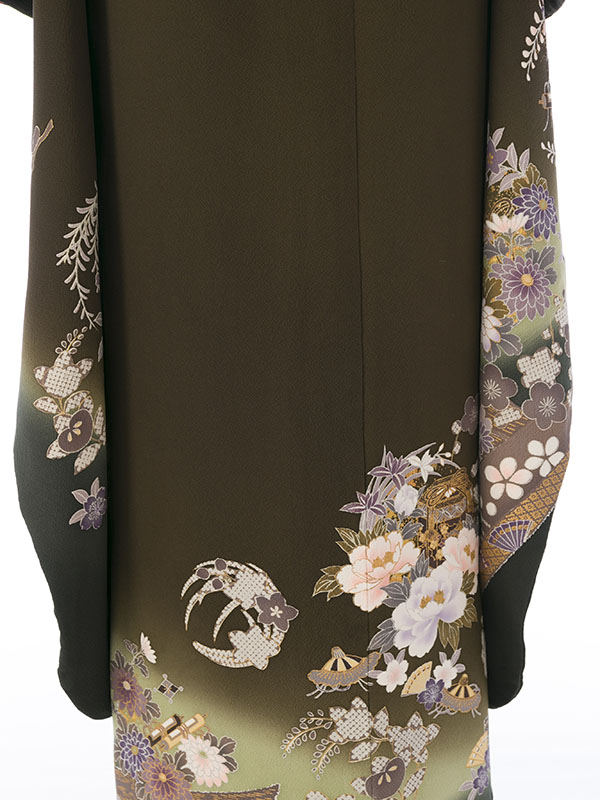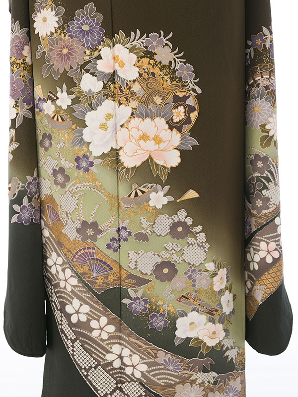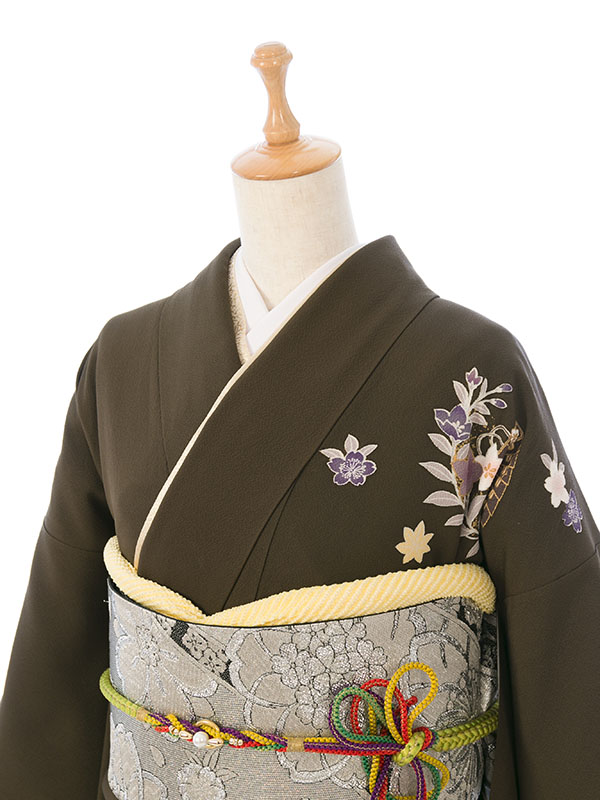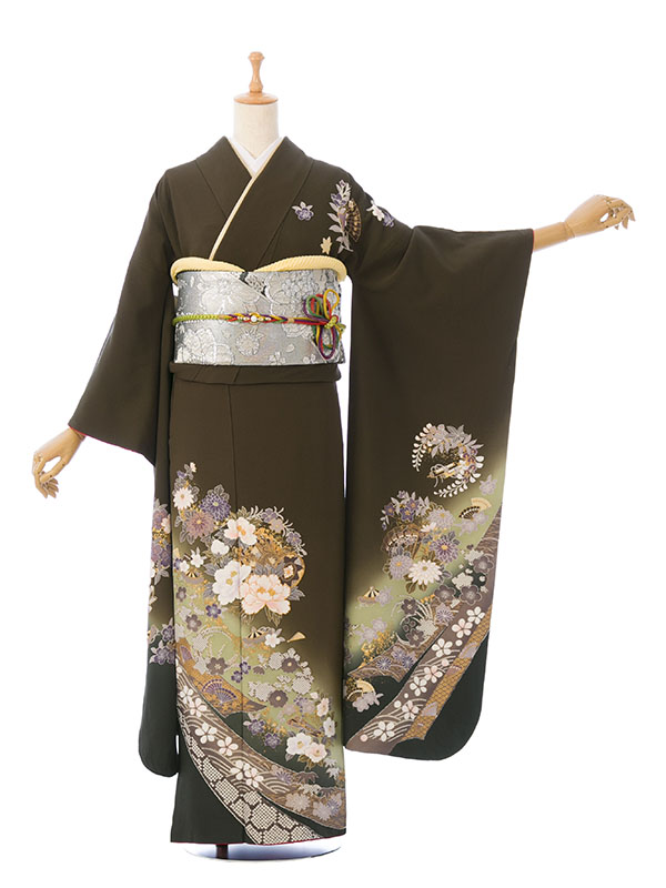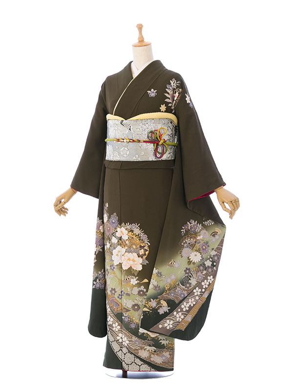 振袖|茶系|桜 牡丹 |4S568|対応身長:153-165cm|サイズ:7号-13号