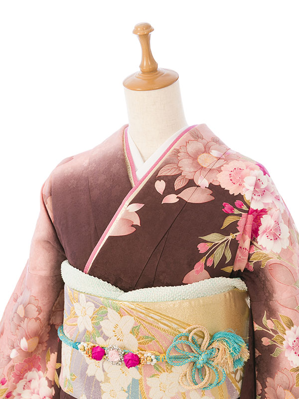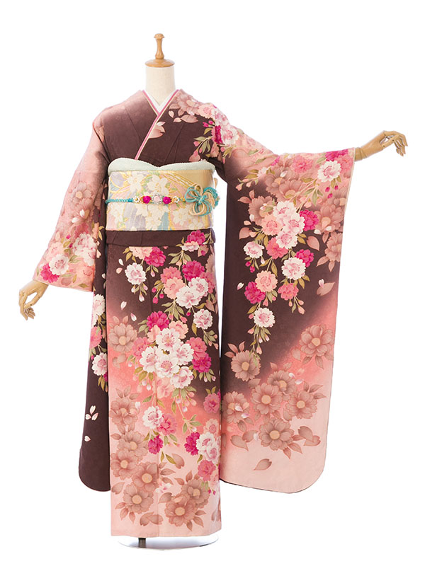 振袖|茶系|桜 |6S172|対応身長:155-165cm|サイズ:7号-13号