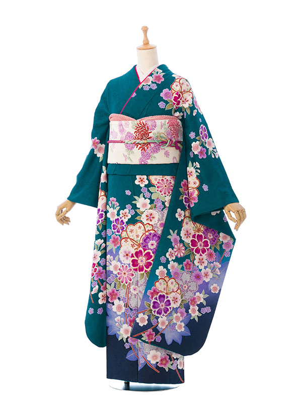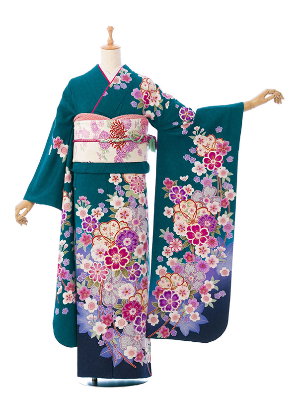 振袖|緑系|桜 |6S039|対応身長:158-165cm|サイズ:7号-13号