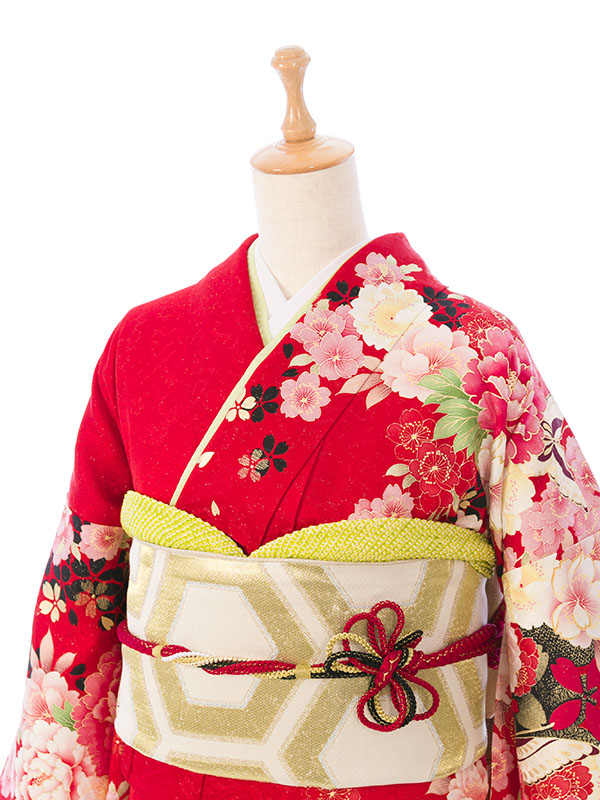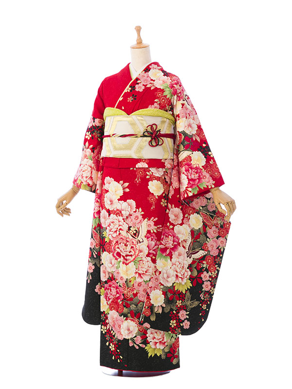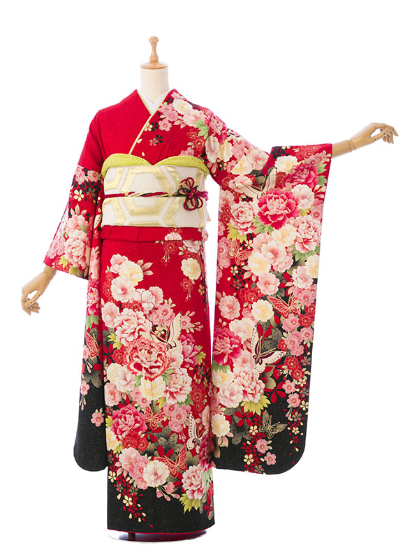 振袖|赤系|桜 牡丹 |1S1094|対応身長:145-155cm|サイズ:7号-9号