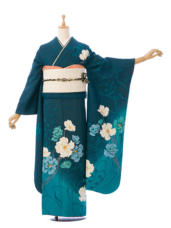 振袖|緑系|桜 |6S005|対応身長:158-165cm|サイズ:7号-13号